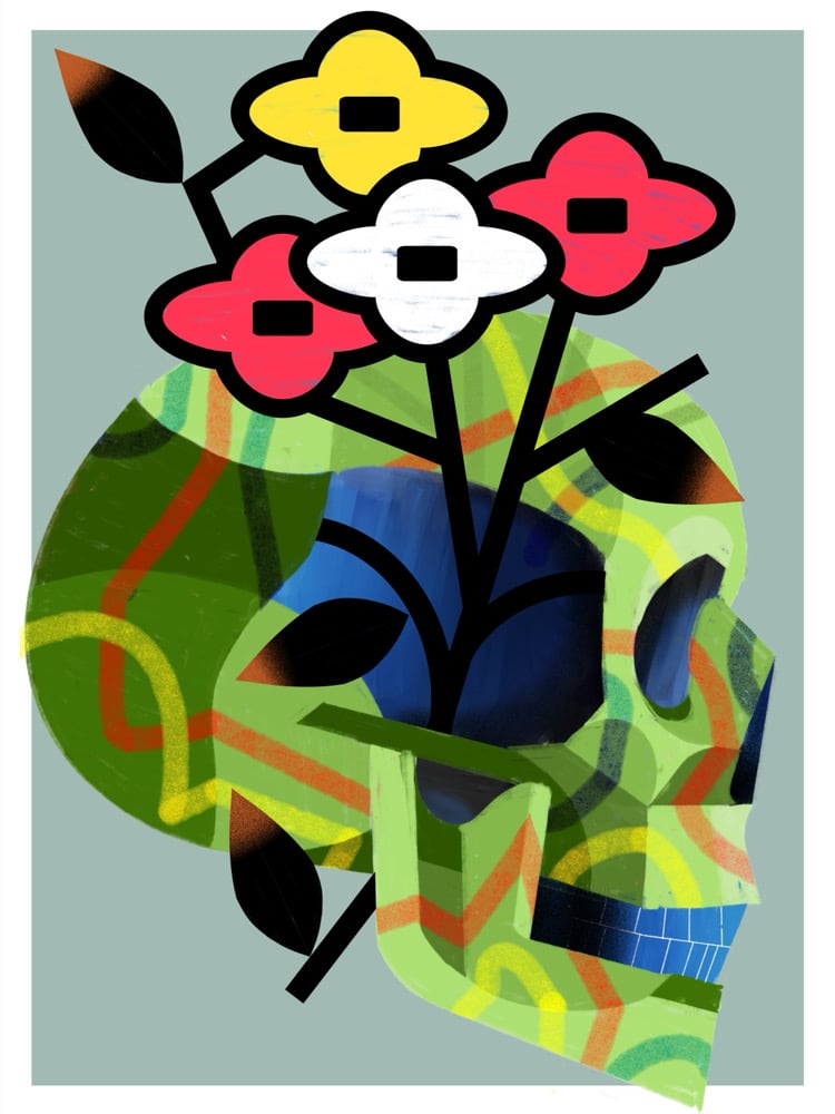 Part of the MEMENTO VIVERE, an exhibition designed to transform the symbol of death into a celebration of life. Initiative, create to support and celebrate the work of Luca Font and support his studio while he is taking care of his health after brain surgery.